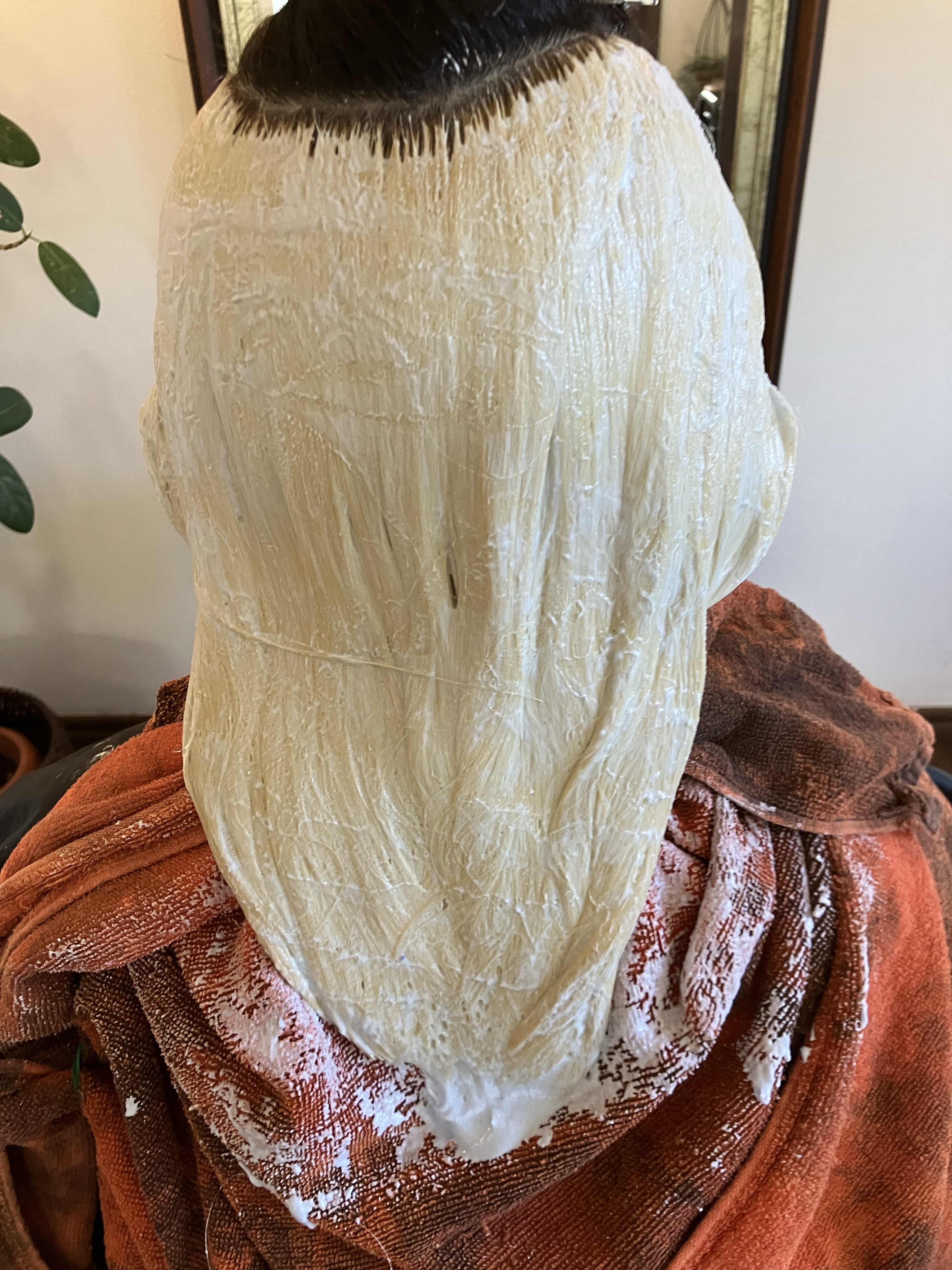 保護剤をつけたのですが、やっぱり少し頭皮が痛かったみたいですが、頑張ってくれました!!!。゚(゚´Д`゚)゚。