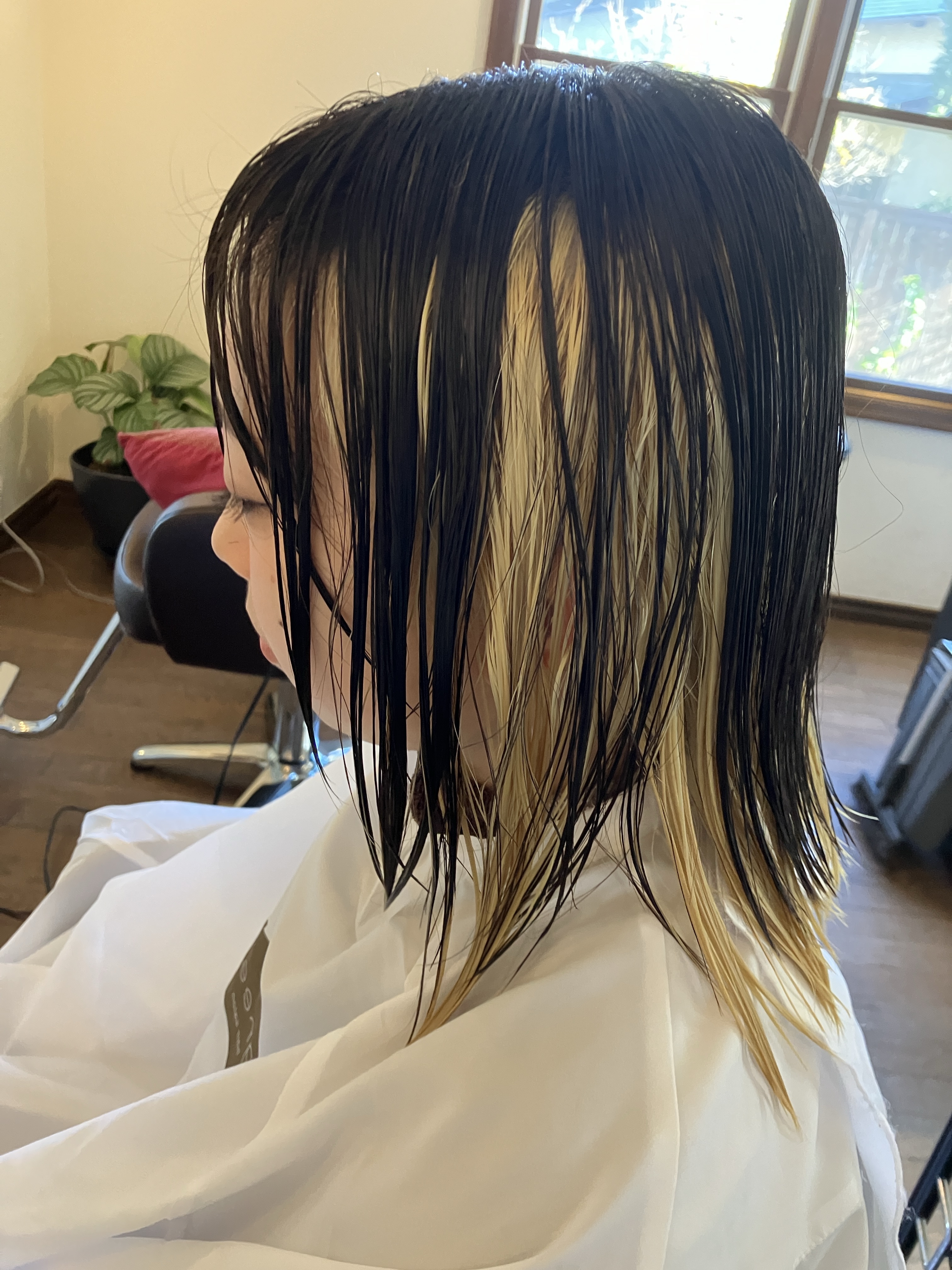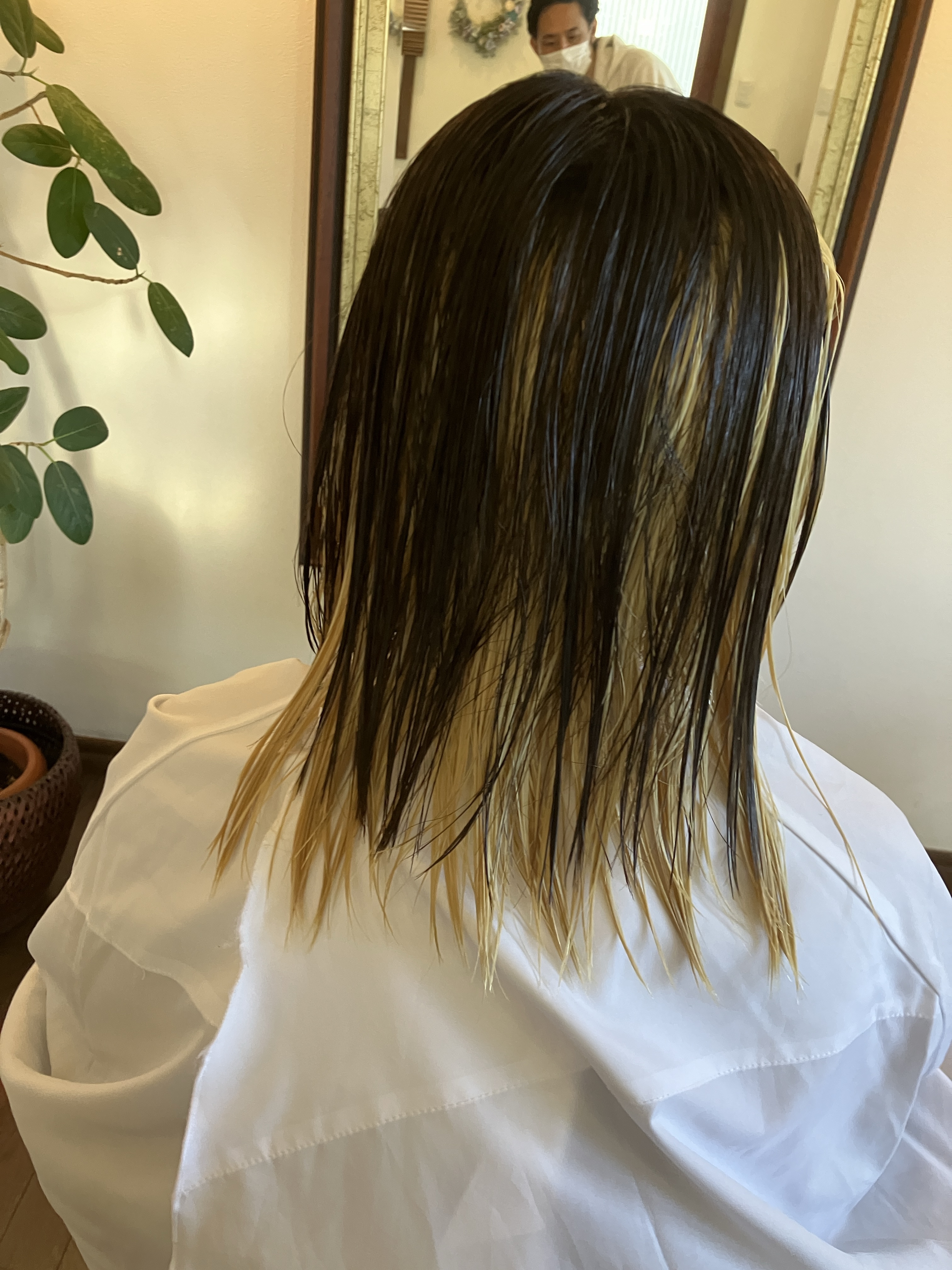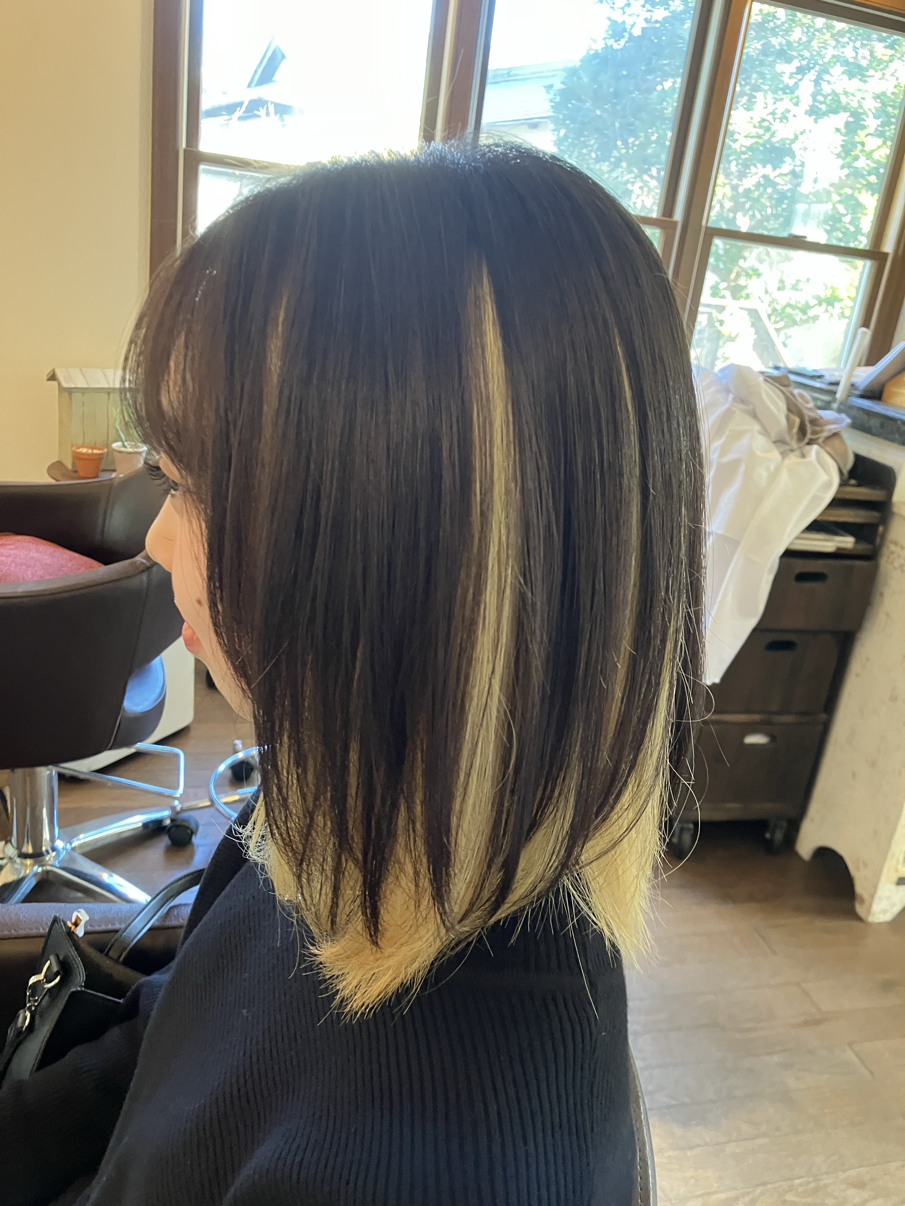 本当はアンブレラカラーみたいにしたいと言っていたのですが、ダメージや今後の事も考えてインナーカラーで、できるだけ目立つように、頑張りましたww