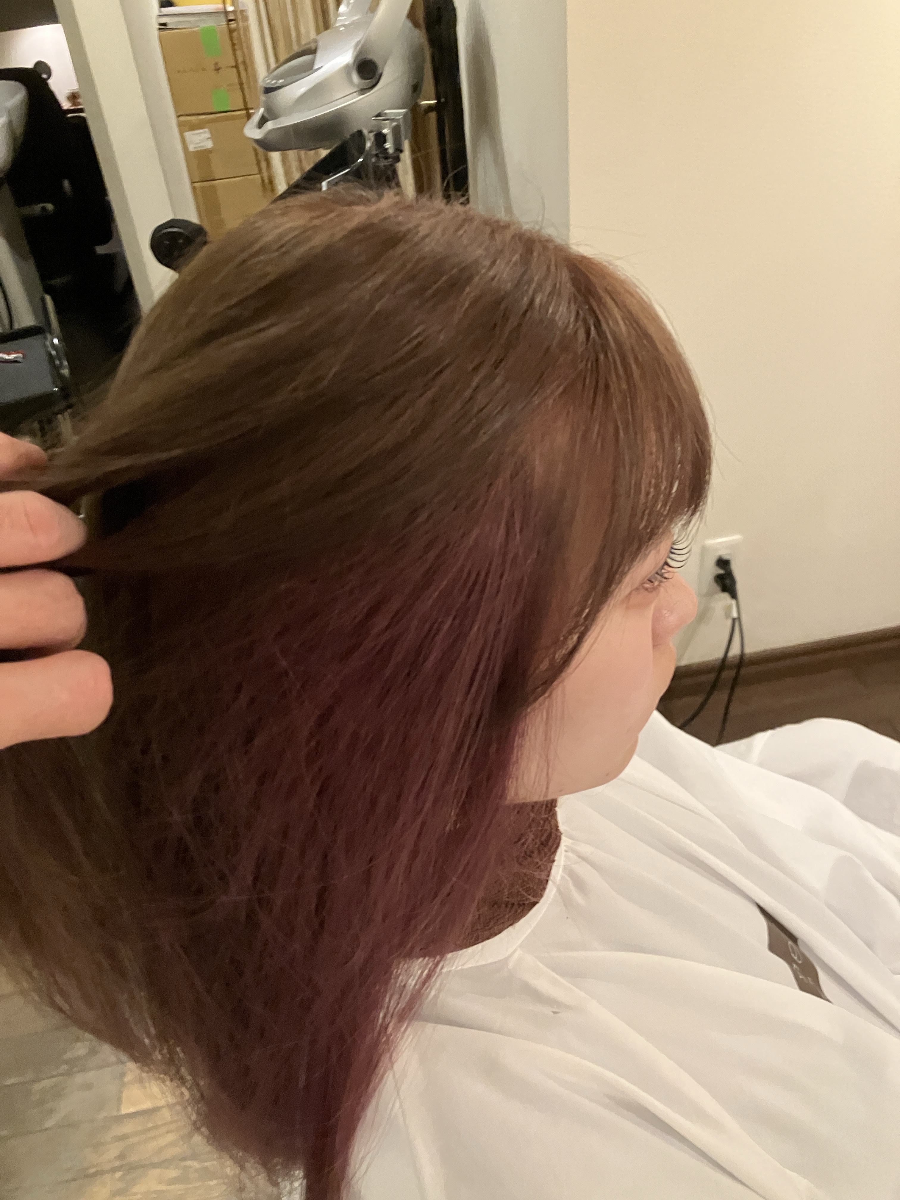 本当はこのまま全体ハイトーンで行きたかったのですが、ちょっと色々あって表面のダメージが大きすぎるので、インナーカラーにする事にしました!