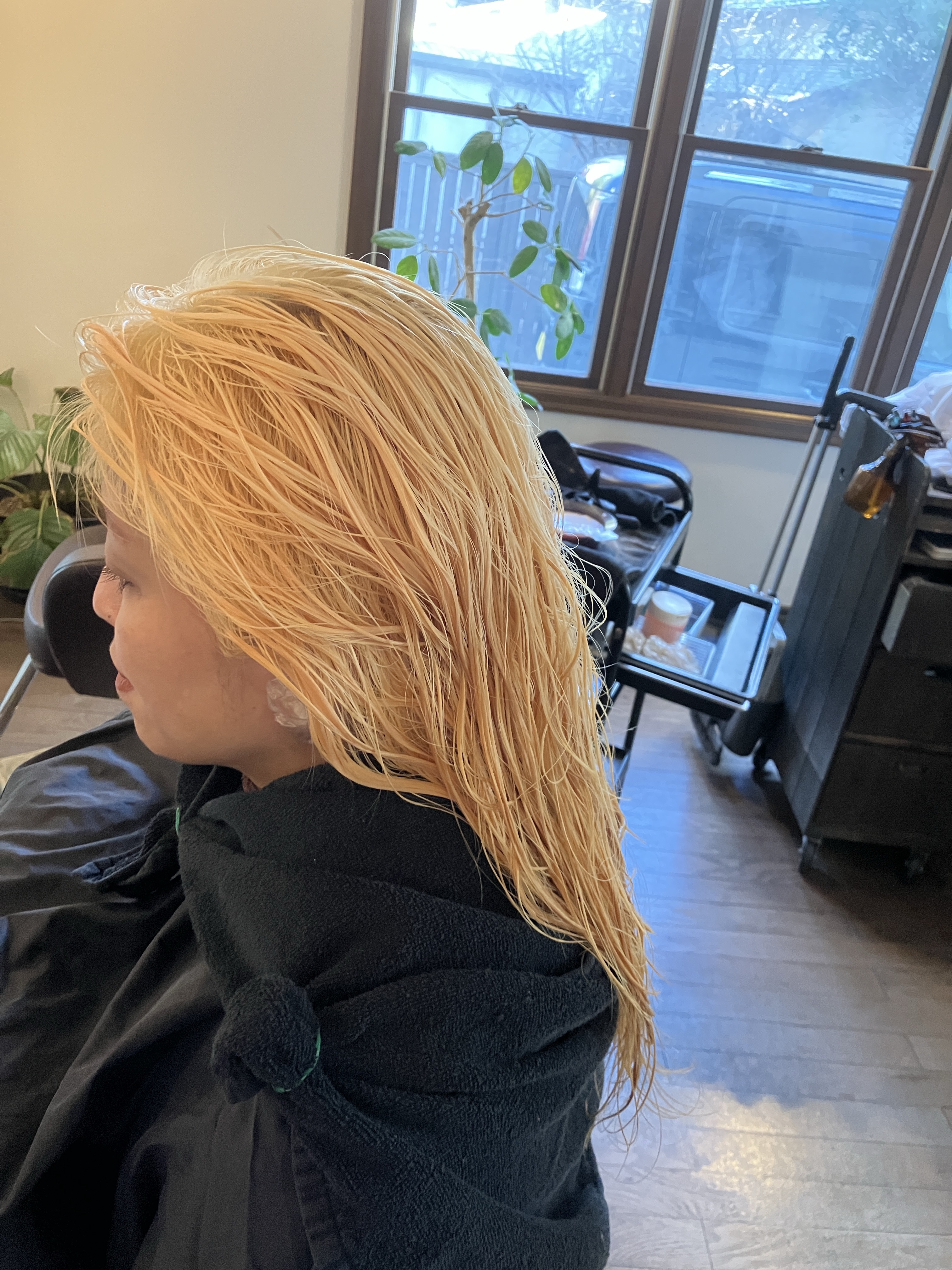先日いつもいらして頂いてるなおさんの髪をブリーチさせて頂きました!(^^)