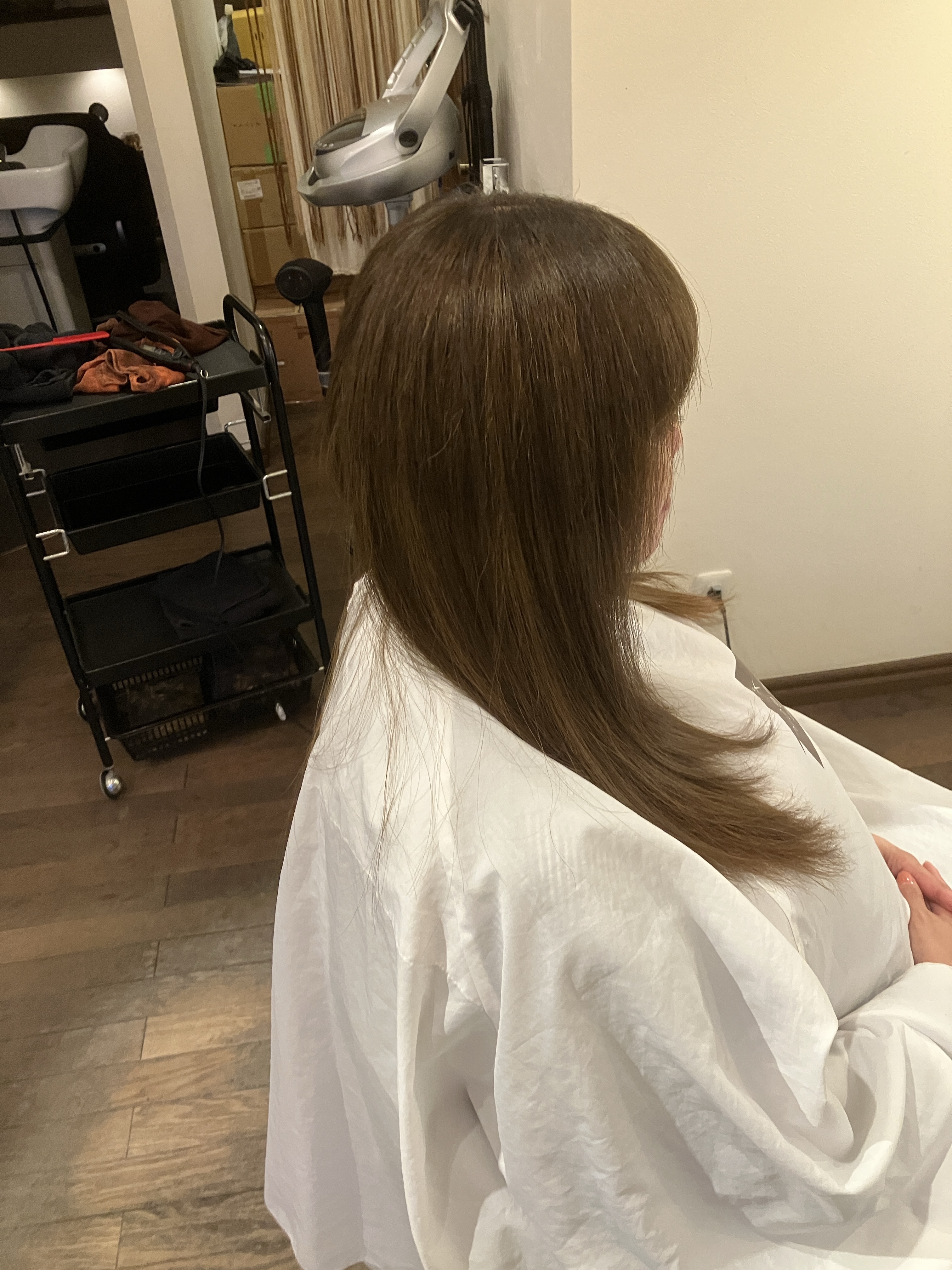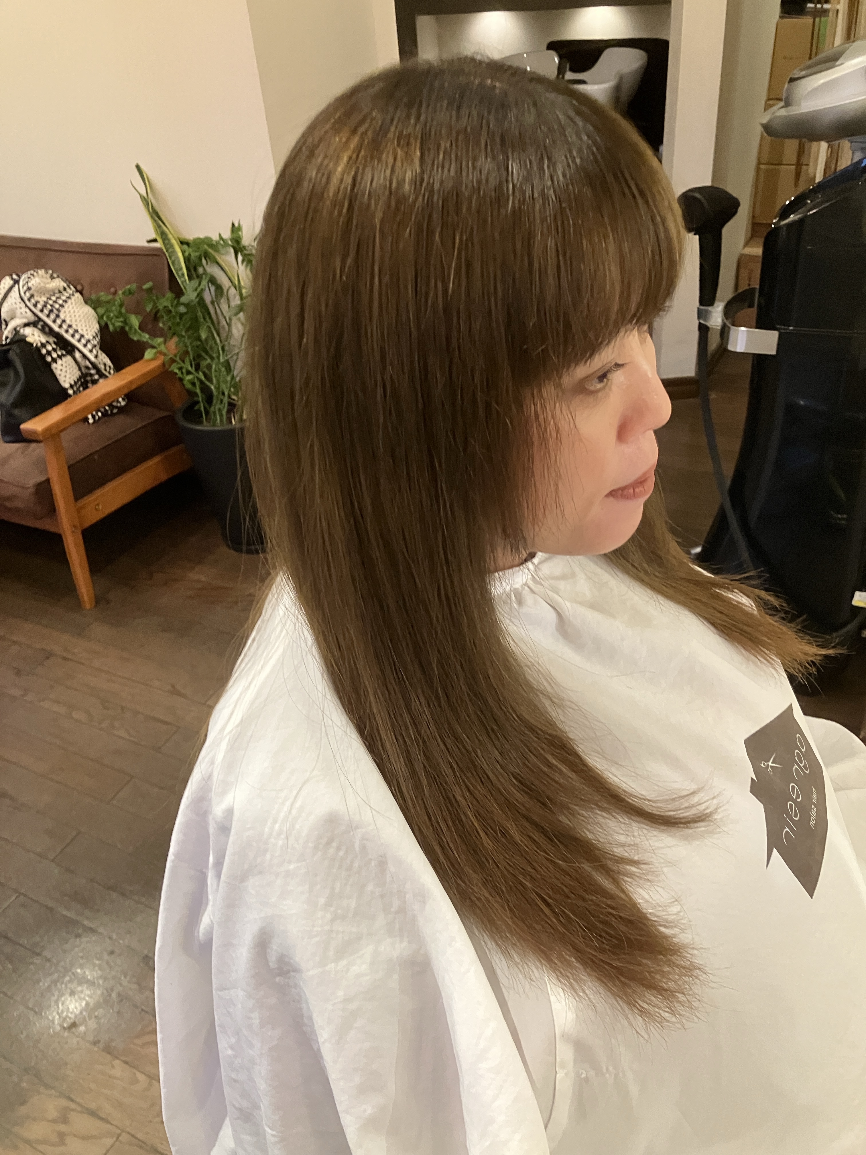 白髪が顔周りに出てきて、お悩みでしたので、敢えてハイトーンにして白髪をボカす様にさせて頂きました!