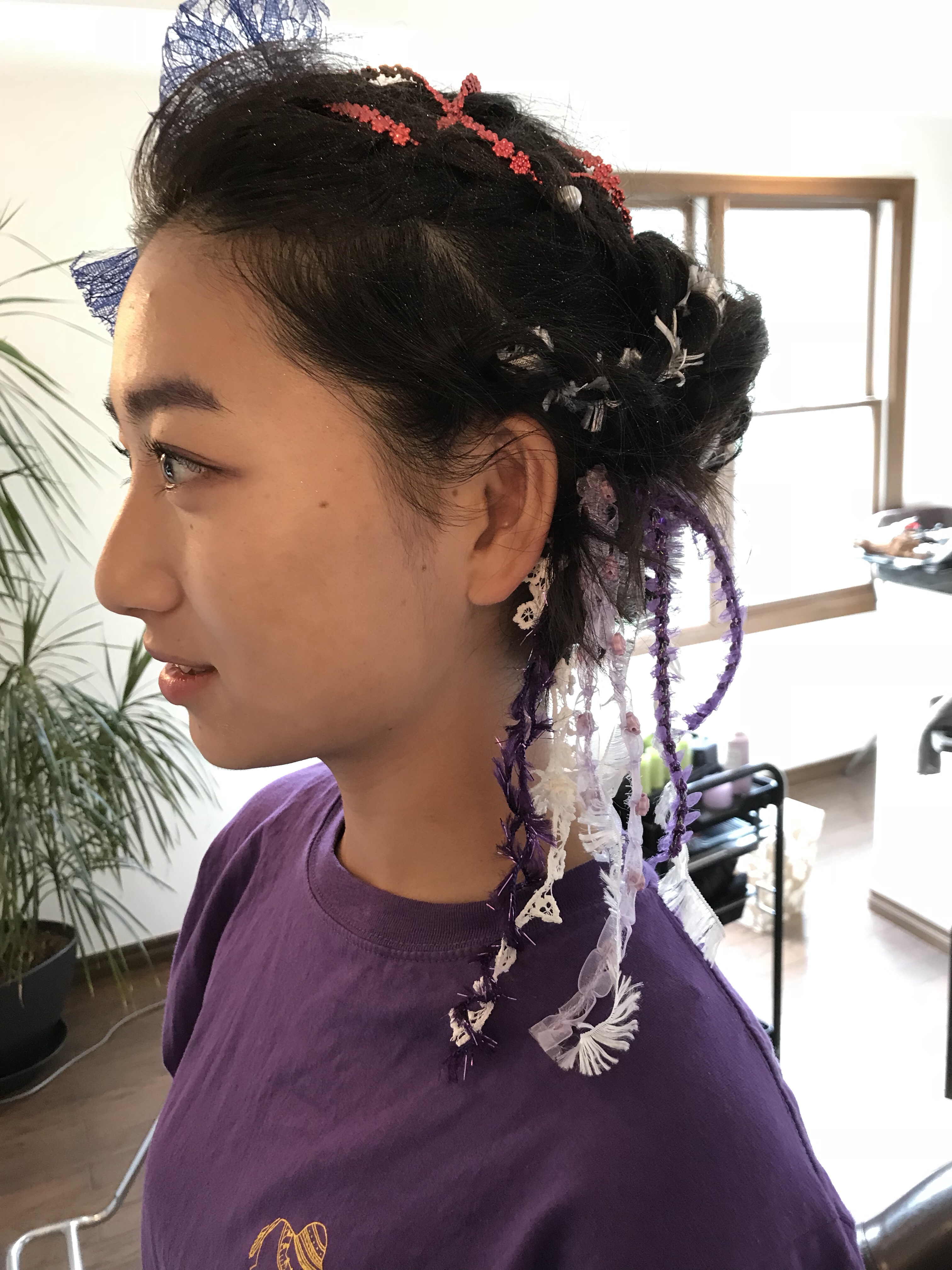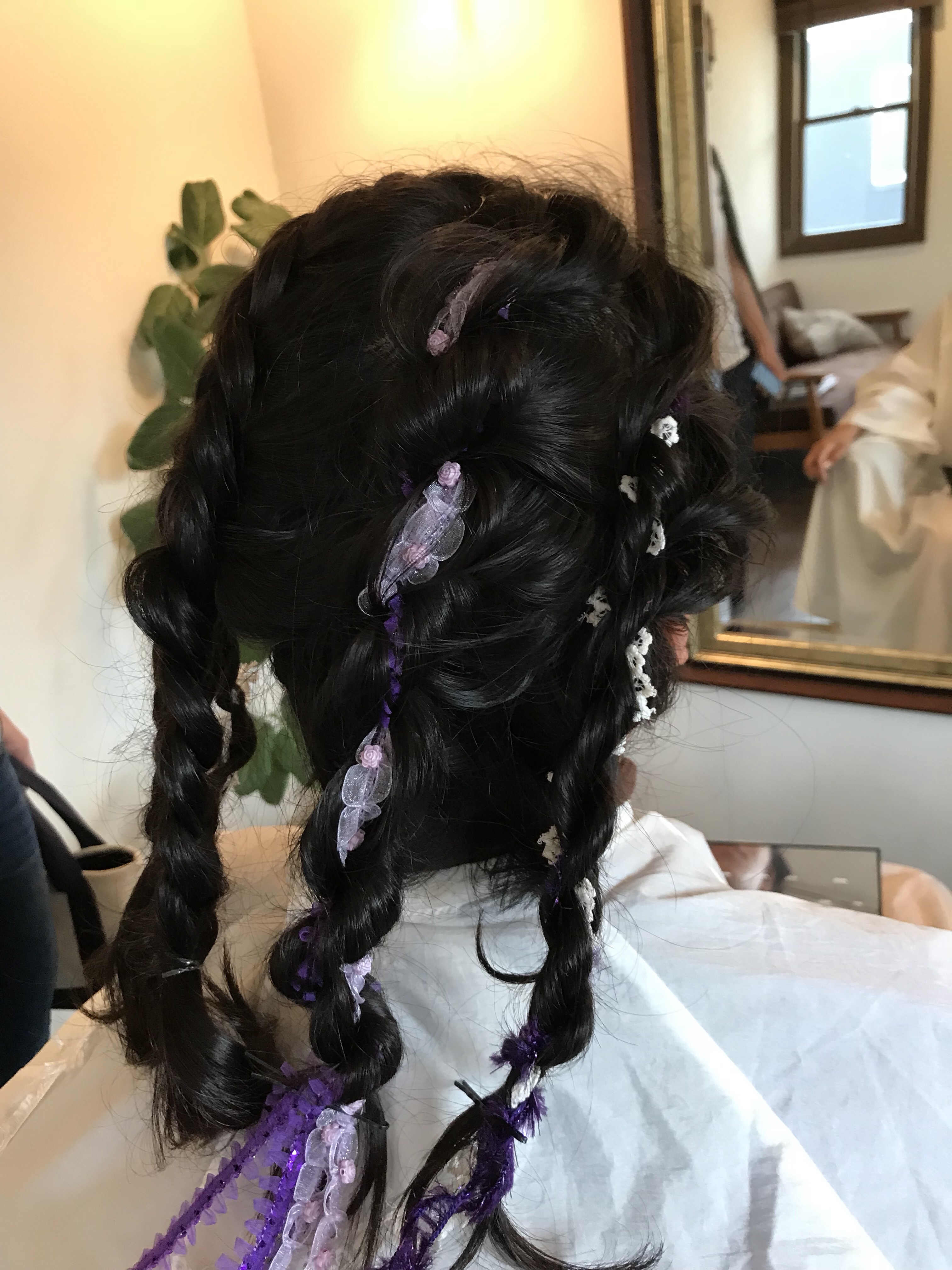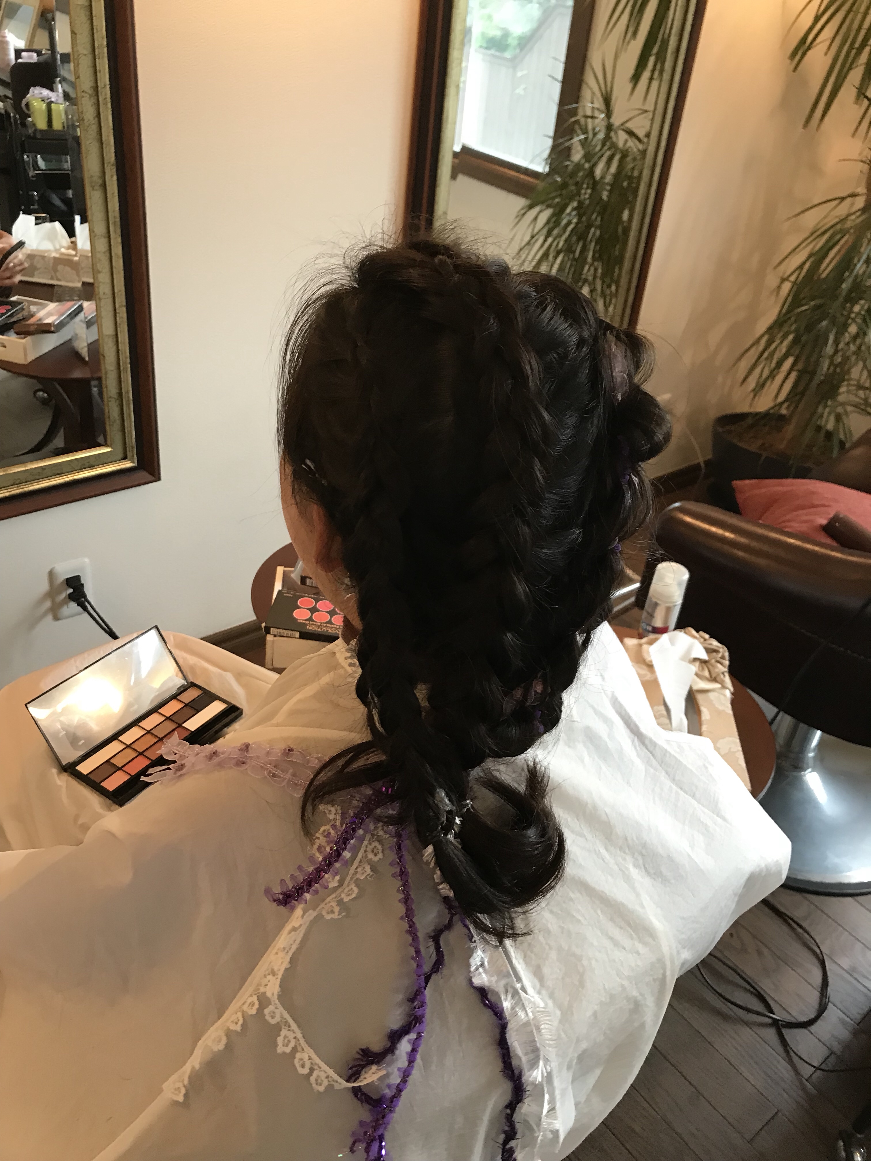 リボンを一緒に編み込んだり、大きなリボンをつけたり、僕自身があまり経験のないセットだったのでとても、勉強になりました!!(*^ω^*)