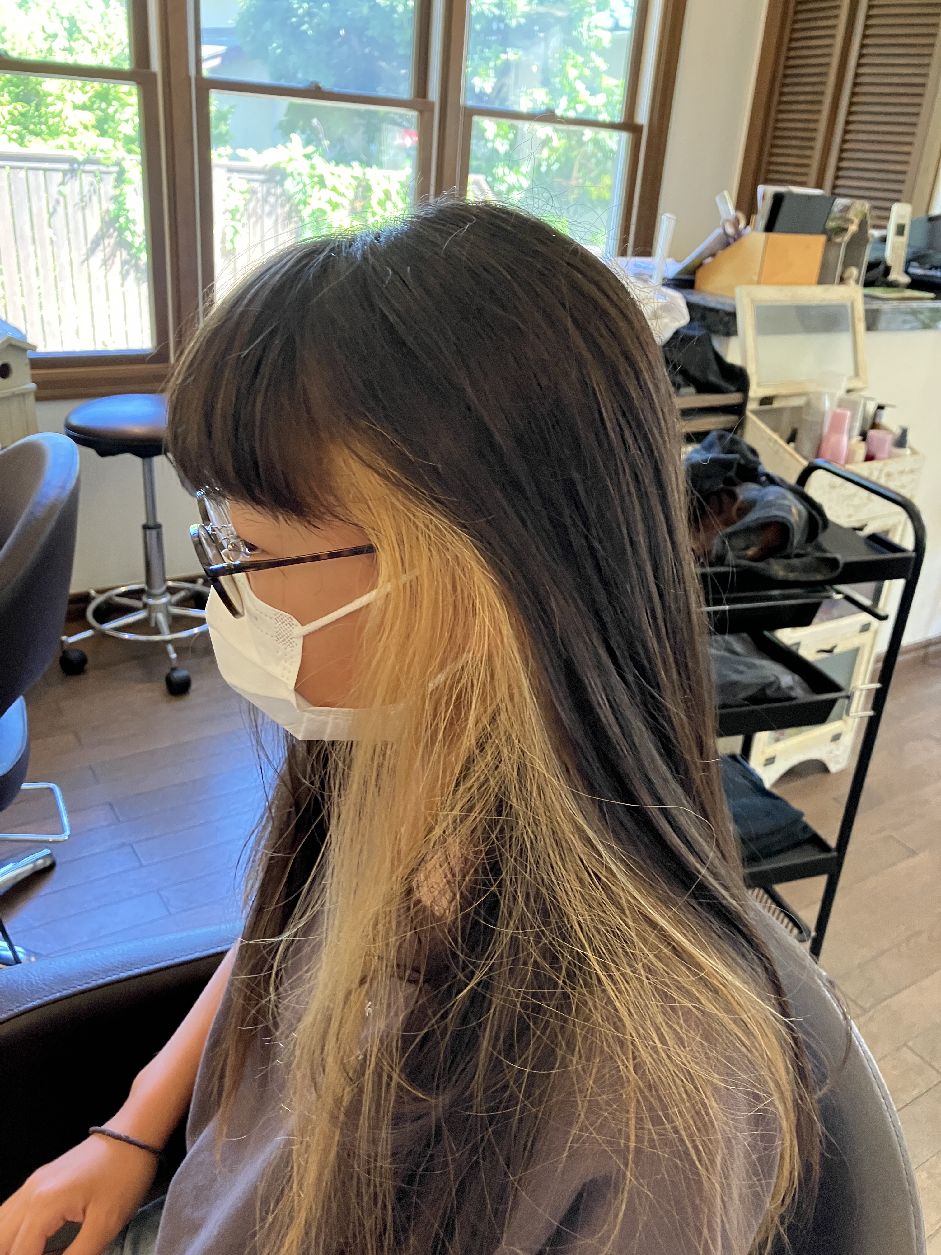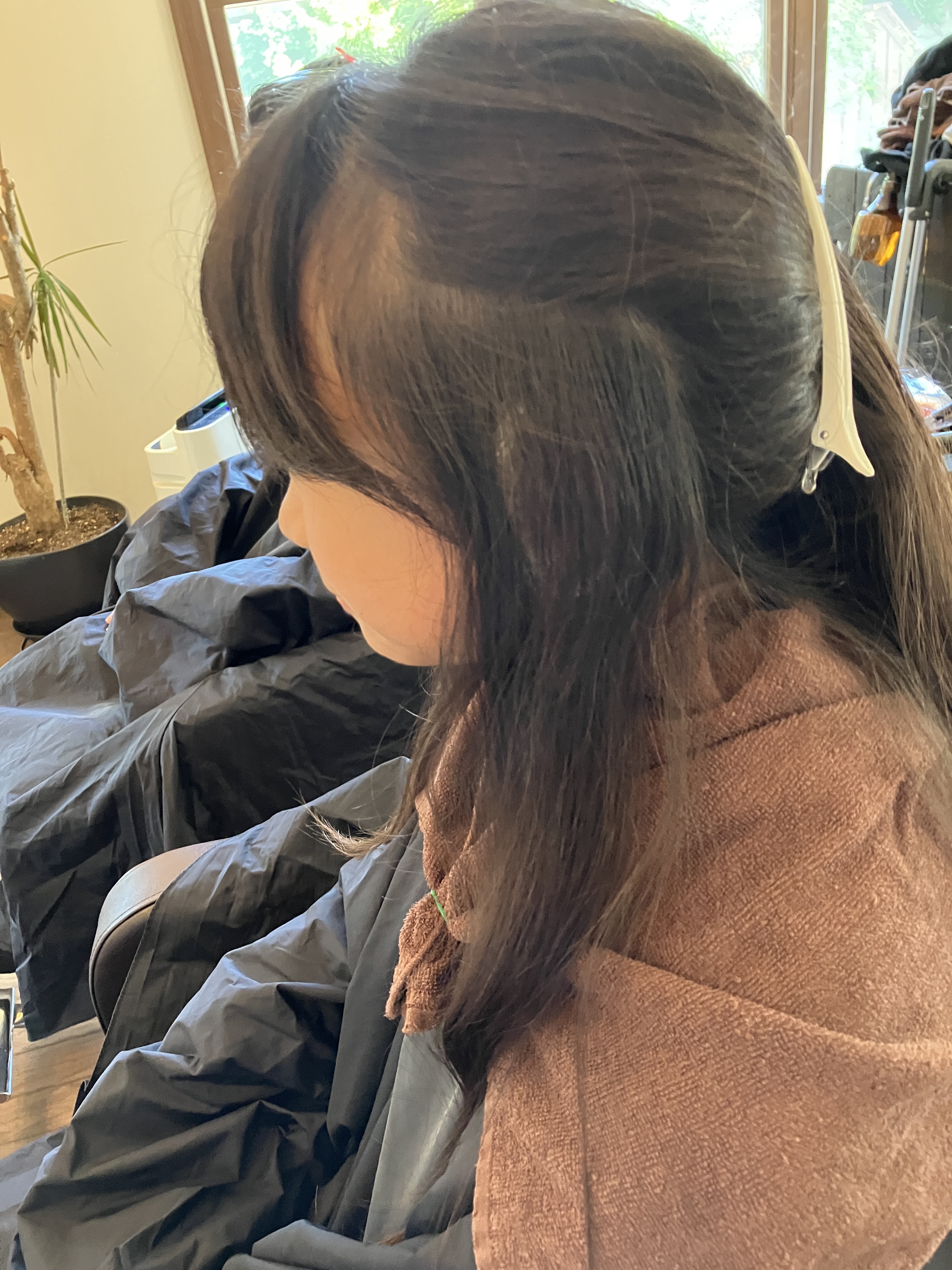 今回は全体ではなく、耳の周りの所を明るくして、可愛くするイヤリングカラーをして欲しいとの事だったので、施術させて頂きました!(о´∀`о)