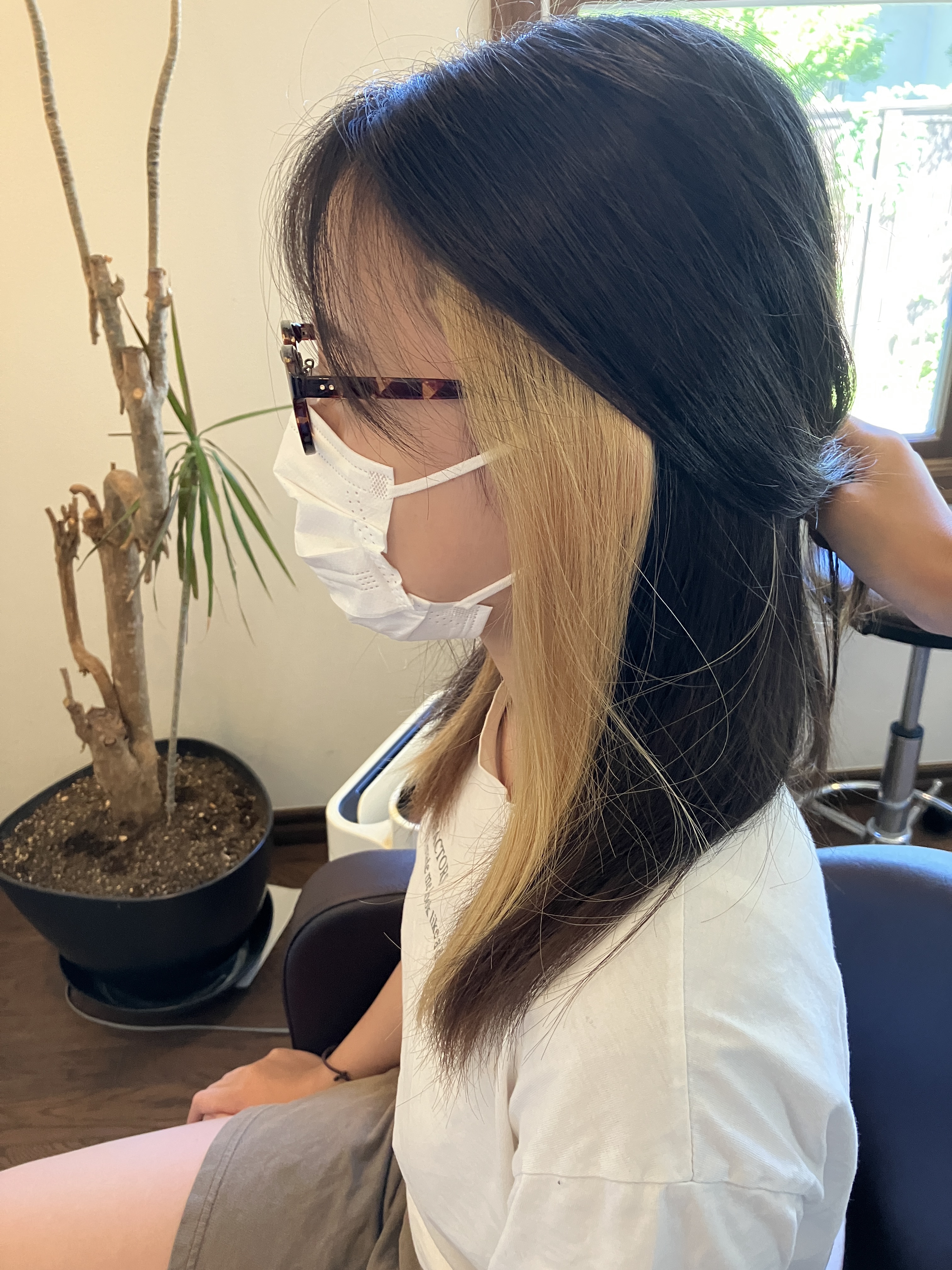ただブリーチをしただけでは黄色が残ってしまうので、お家でカラーシャンプーなどをして色を重ねてもらう事に今日はしました!!(*^^*)