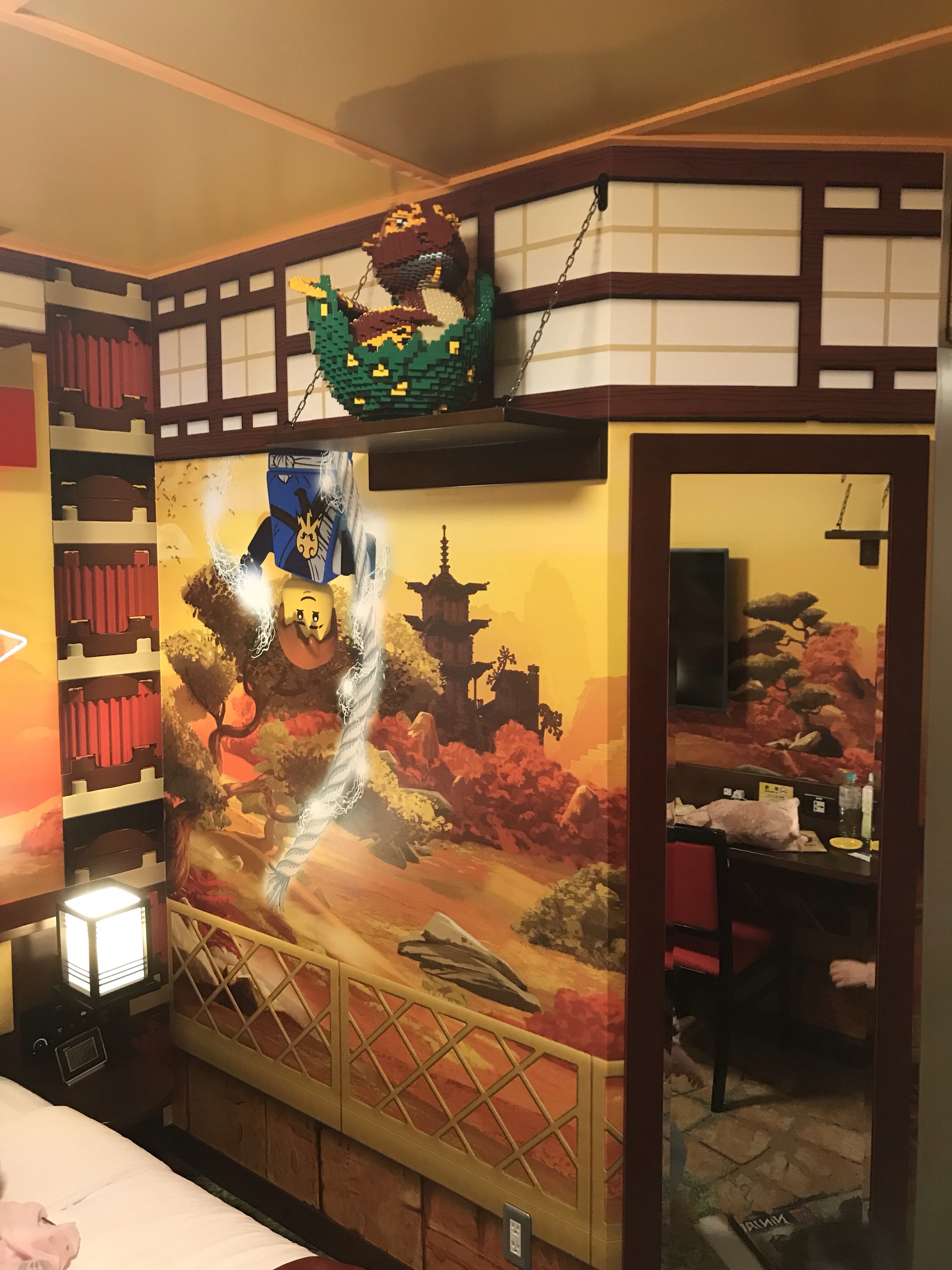 LEGOランドホテルに泊まったのですが、私達はLEGOニンジャをテーマにしたお部屋になっていて、LEGOで作られた手裏剣や鷲や兜も飾られていて、息子も大興奮でした!!(o^^o)